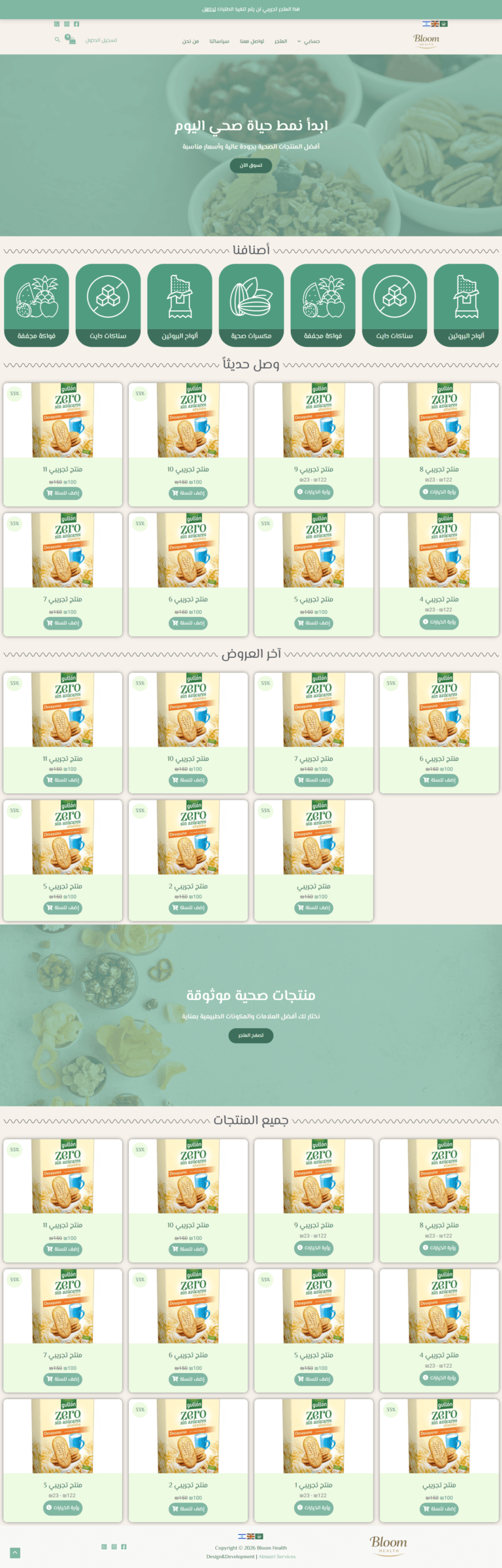 معرض الأعمال أعمالنا في المواقع تصفح جميع الخدمات مستلزمات المركبات Platinumonline العناية بالبشرة Skinovaps متجر شامل Shopyasco إكسسوارات رجالية Lumera ذهب و مجوهرات Calvera خدمات الطباعة Smartdp ملابس رياضية Jsjstores شامل و متعدد التجار Cartpl طعام تراثي فلسطيني Olivery منصة توثيق شهادات FIBQ مأكولات صحية Bloom هدايا و تحف Giftgbt مؤسسة خيرية Globalgiving أعمالنا في التصميم تصفح جميع الخدمات